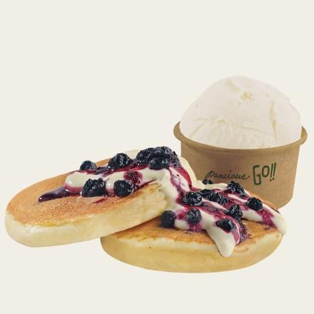 Ice cream vanilla with sauce blueberry cover this delicious pancake.