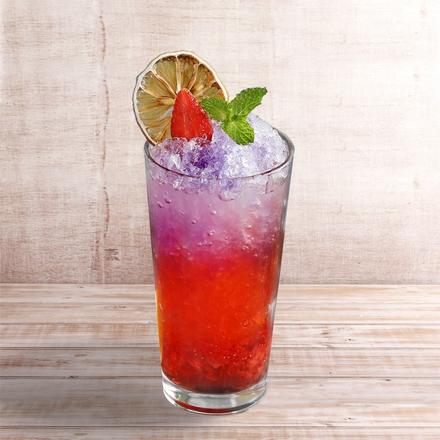 This delightful drink features fresh strawberries, aromatic jasmine syrup, and vibrant butterfly pea syrup, all harmonized with a splash of zesty lemon syrup.