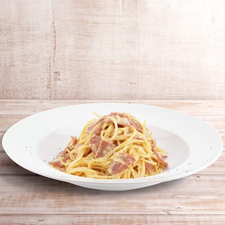 A mouth watering carbonara with smoked beef, cream, and egg