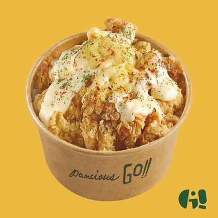 Contemporary rice bowl menu served with fried chicken, mozzarella and cheese sauce