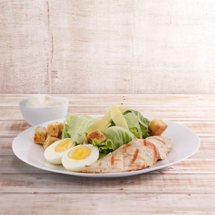 Fit and healthy with romaine lettuce, egg, grilled chicken, parmesan cheese, croutons, and caesar dressing