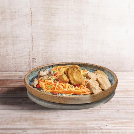 Another spicy yet creamy pasta creation by Pancious. Served with sausage, parmesan cheese, and Heinz Korean Gourmet Chili ala Gochujang